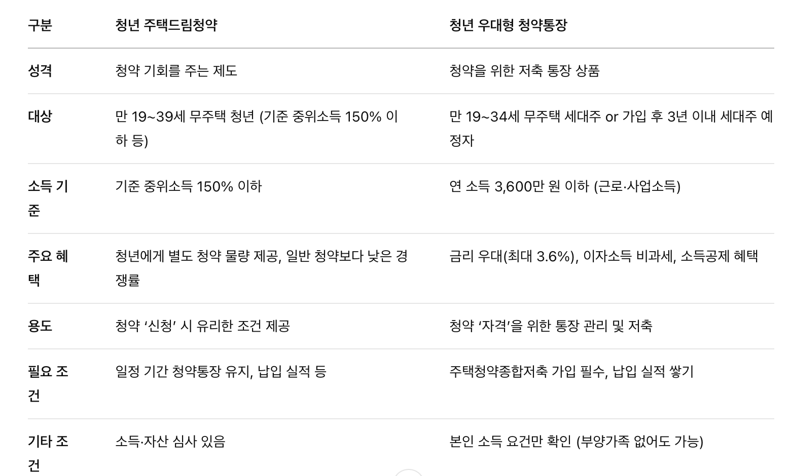 청년 주택드림청약과 청년 우대형 청약통장 비교