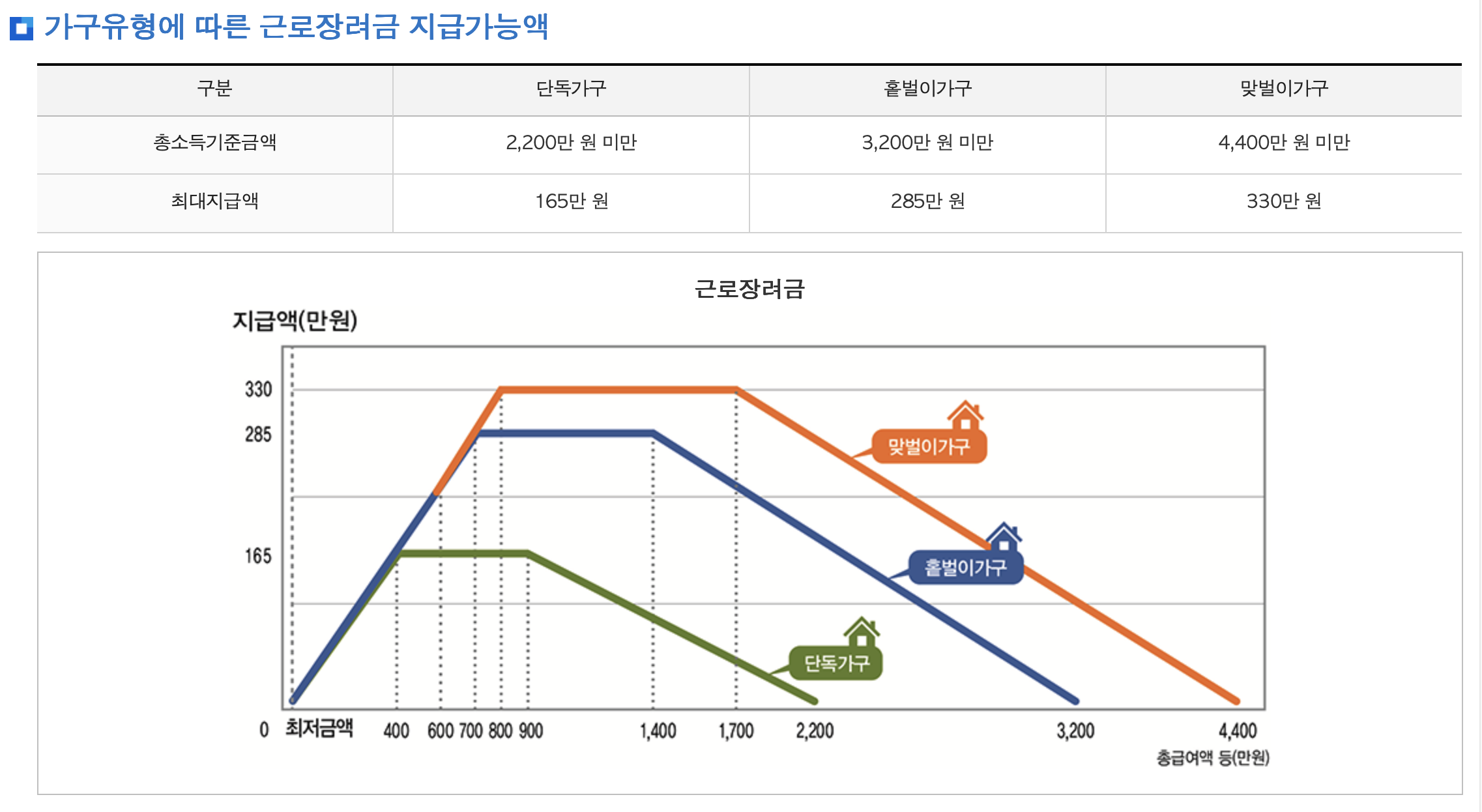 · 맞벌이 가구: 총소득 4,400만 원 미만 / 최대 지급액 330만 원