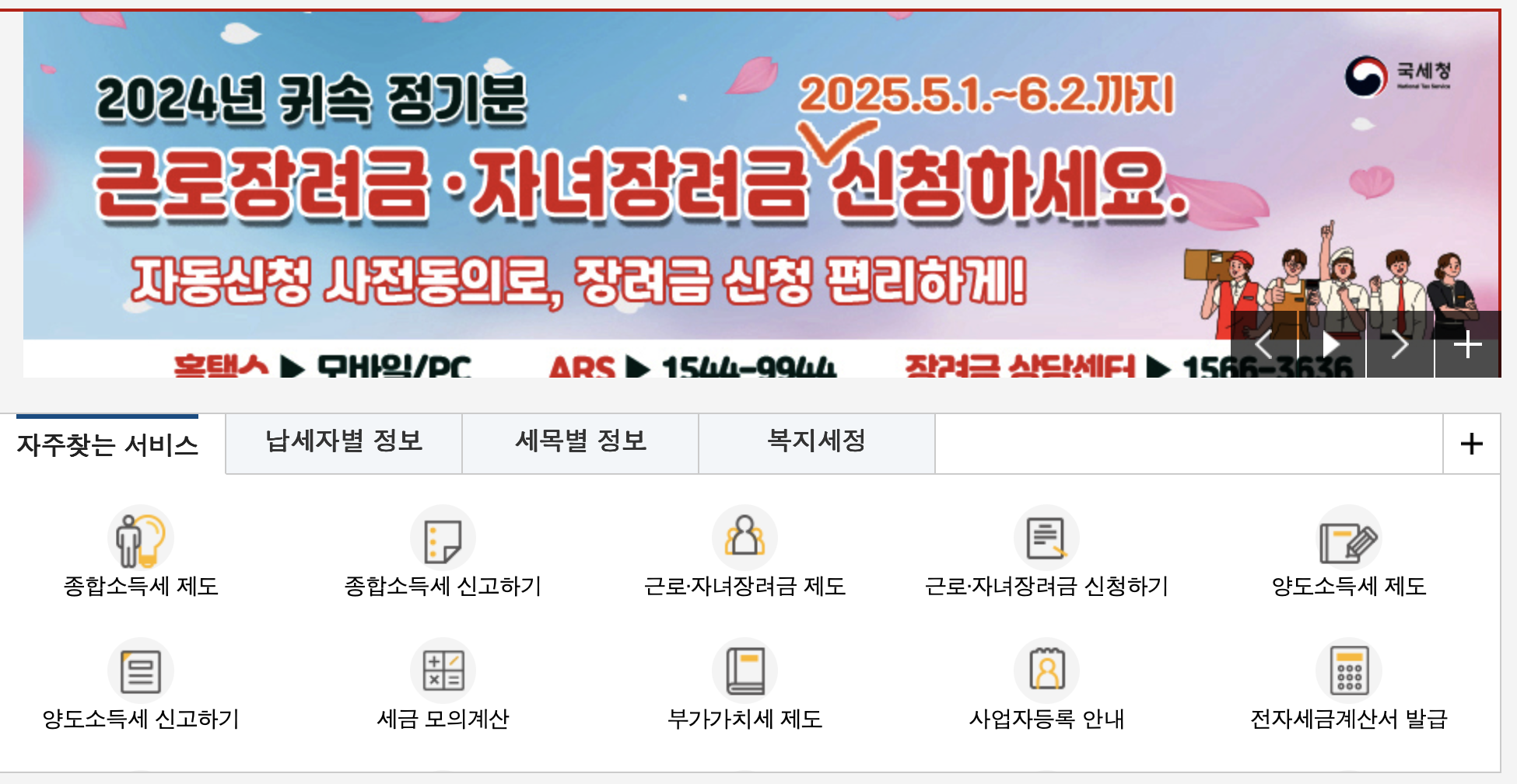 세무서 대표전화로 문의할 경우 본인 인증을 하면 AI 맞춤형 상담을 받을 수 있고, 자주 묻는 질문은 보이는 ARS를 통해 상담원 연결 없이도 바로 확인할 수 있습니다. 또한 장려금 상담센터(1566-3636)는 상담 대기 시간이 길 경우 전화번호를 남기면 상담원이 다시 전화를 주는 콜백 서비스를 운영합니다.